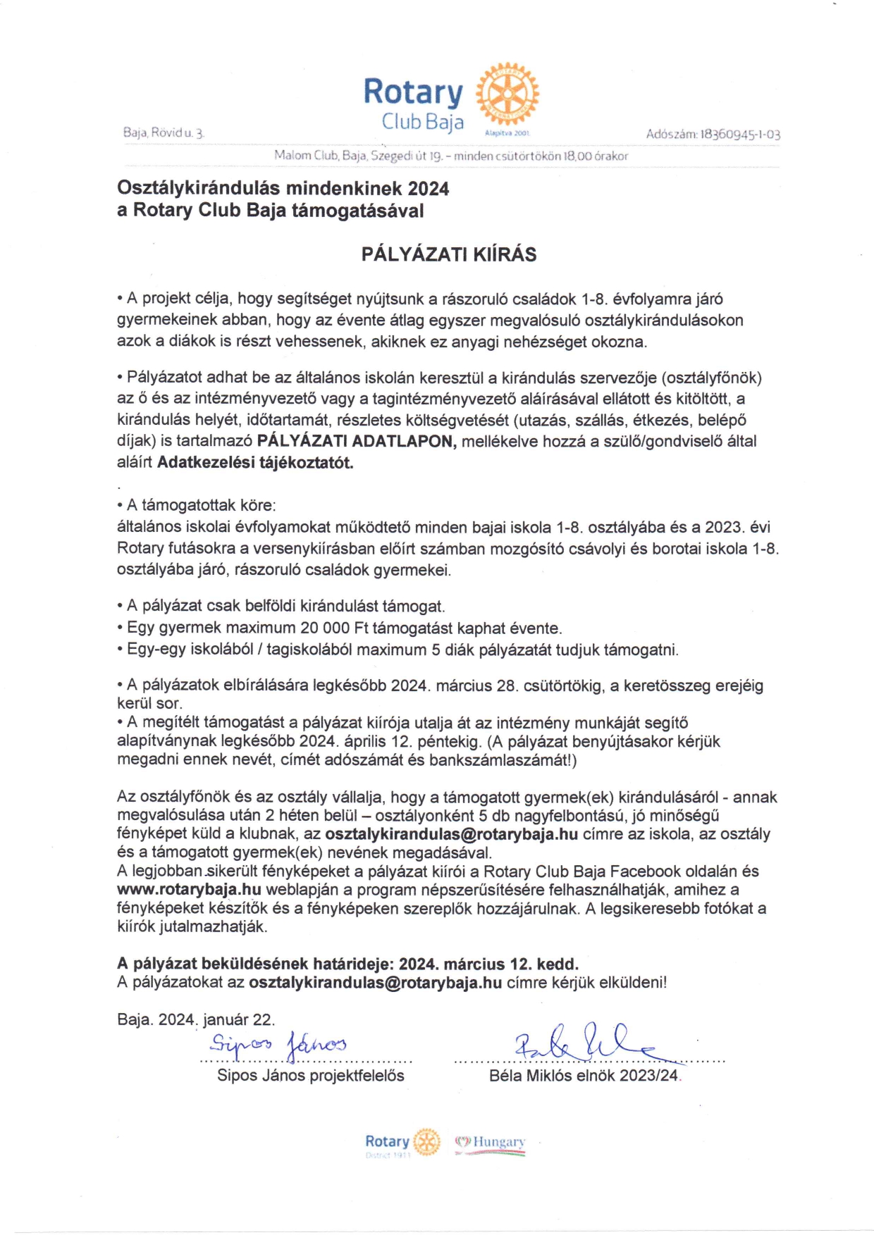 BAJAI ISKOLÁK VALAMINT A CSÁVOLYI ÉS A BOROTAI ISKOLA RÉSZÉRE: „Osztálykirándulás mindenkinek 2024” – adatlap letöltése itt, vagy a képre kattintva>>> Kattintson ide az adatlap letöltéséhez